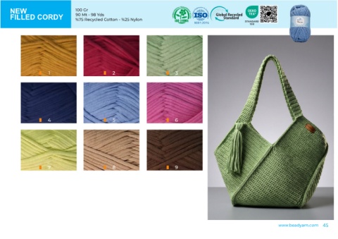 NEW 100 Gr 90 Mt - 98 Yds FILLED CORDY %75 Recycled Cotton - %25 Nylon 9001꞉2015 1 2 3 4 5 6 7 8 9 www.beadyarn.com